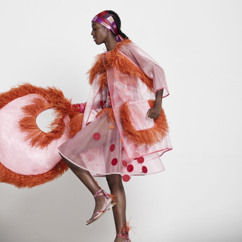 La collezione Primavera/Estate 2021 di Gianluca Capannolo mescola tribal chic e mood urbano in una esplosione di stampe etniche e animalier ispirate all’Africa e realizzate dal designer, accessori piumati e intrecci in corda.