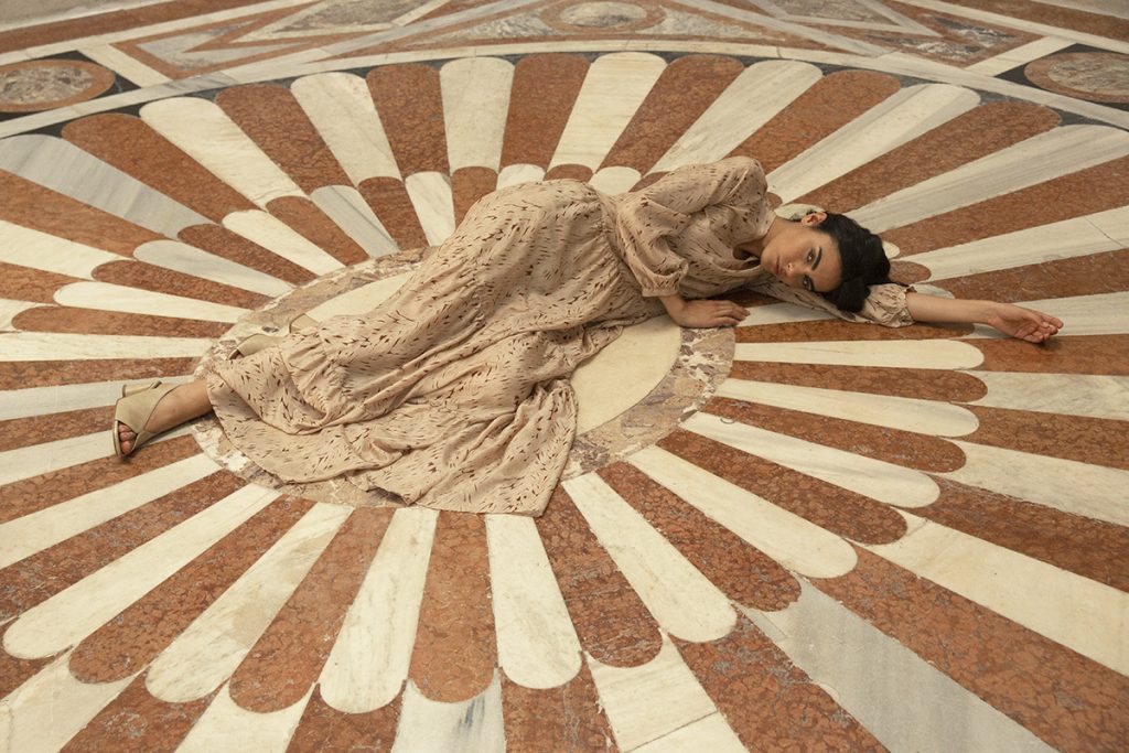 Dettagli ricercati, forme e silhouette essenziali, ricami, stampe descrivono uno stile sofisticato e antico, enfatizzato da dettagli ricercati – allacciature evidenti, bordature a contrasto, inserti sartoriali – e declinata in una palette di colori decisi, che comprende rosso Cina, peonia, arancio, blu navy, azzurro polveroso e bianco gesso.