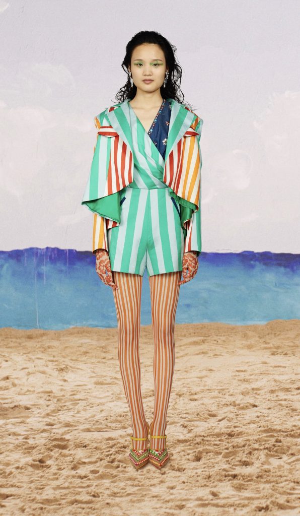 la collezione Shuting Qiu SS 2021 è caratterizzata da stampe colorate e vivaci, ricami floreali e di perline, jacquard metallizzati, quadri e righe audaci e conferma la propria attenzione per la moda ecosostenibile con un ampio uso di denim recycled e di materiali e tessuti ottenuti dall’upcycling di prodotti esausti.