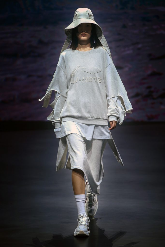 Il marchio di sportswear cinese Li-Ning, che prende il nome dall’omonimo, famoso campione olimpico, conosciuto come il “principe della ginnastica”, è tornato a Parigi per lanciare la collezione Primavera/Estate 2021. Il brand ha optato per una presentazione “virtuale” e ha mostrato i capi della proposta per la prossima bella stagione attraverso lo short movie The Art of Movement, realizzato dal celebre cineasta cinese Lu Yang, girato a Shanghai e organizzato in 4 sezioni che rappresentano gli elementi naturali Aria, Acqua, Terra e Fuoco.In linea con la vocazione innovativa e sperimentale di Li-Ning e come sempre focalizzata su un perfetto equilibrio tra stile e performance, la nuova collezione esplora il potente collegamento tra design ed energia cinetica e si concentra su come la forma e il materiale possono allo stesso tempo proteggere e potenziare il corpo in movimento.Il risultato sono una serie di capi dalle silhouette morbide, realizzate per mezzo di tecniche che comprendono la lavorazione a maglia, intrecci, arricciature, pieghettature e annodature. La sartorialità ha un ruolo chiave nella costruzione dei diversi pezzi ed è espressa attraverso un sapiente uso del volume, delle fasciature e della compressione, che corrispondono a libertà di movimento, protezione e forza.