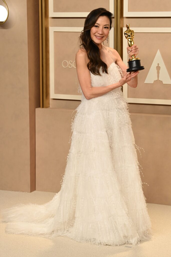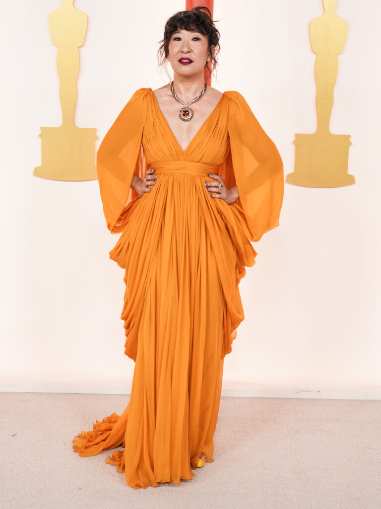 Tra le protagoniste fashion della serata c’è anche Halle Bailey, con un romantico abito azzurro di Dolce & Gabbana. E non da meno sono state Sandra Oh e Angela Bassett, che hanno indossato i colori più audaci dell’edizione 2023 degli Oscar: La prima ha “osato” un bellissimo vestito drappeggiato arancione di Giambattista Valli e la seconda ha scelto un abito viola monospalla di Moschino.