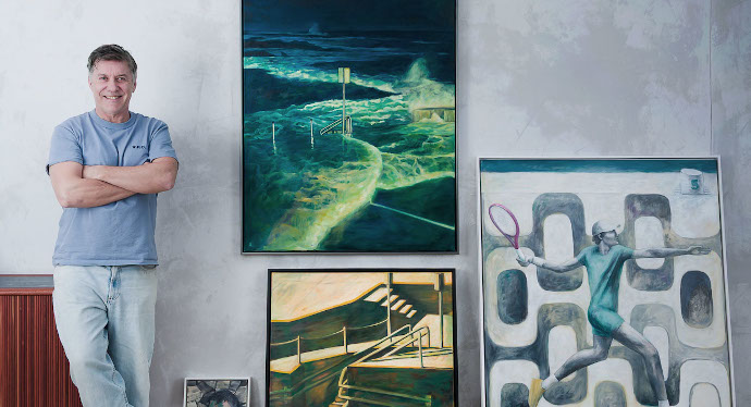 Distorcendo la prospettiva, esagerando la forma e usando il colore in modo emotivo piuttosto che descrittivo, il mio lavoro allude all’espressionismo del XX secolo attraverso una lente del XXI secolo. I soggetti sono spesso colti nel bel mezzo di un pensiero o di un movimento, inquadrati con un’estetica cinematografica. Combino il letterale e il simbolico: ad esempio, la racchetta come scudo per Cobolli.